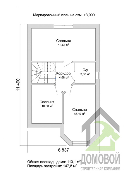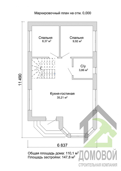 - Для 2-х этажных домов монолитная железобетонная лестница и межэтажное перекрытие