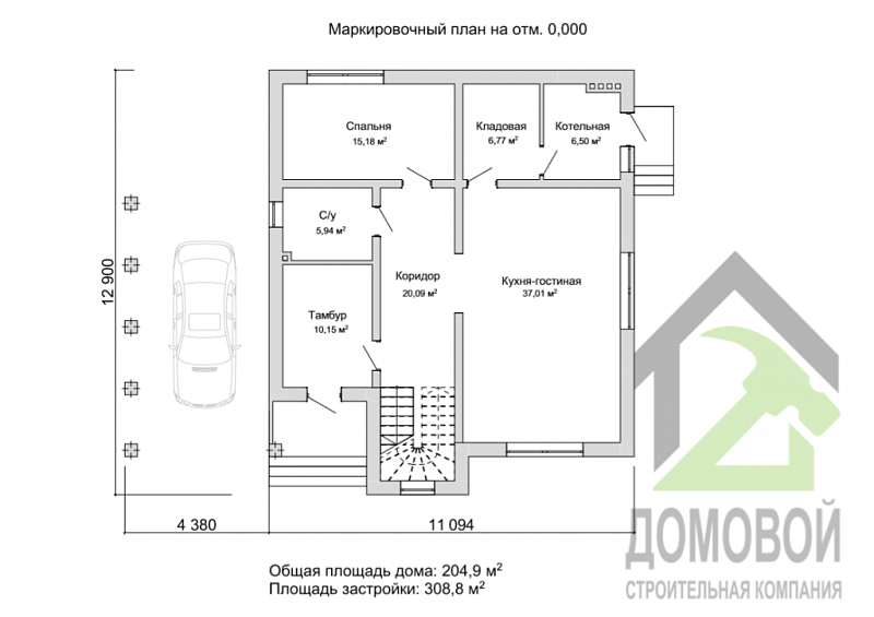 - Строительная площадь: 308 м²