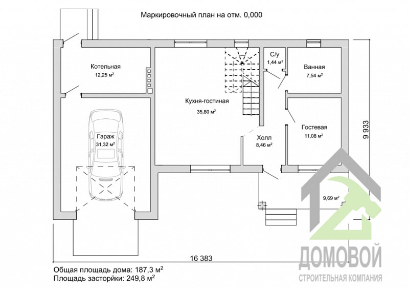 - Строительная площадь: 249.8 м²