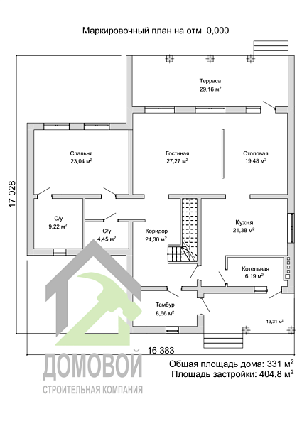 - Строительная площадь: 404.8 м²