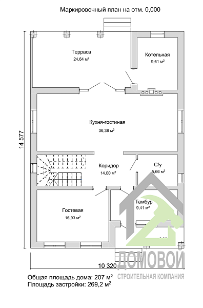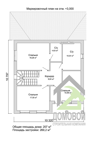 - Строительная площадь: 269.2 м²