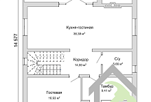 - Площадь гостиной: 36.3 м²