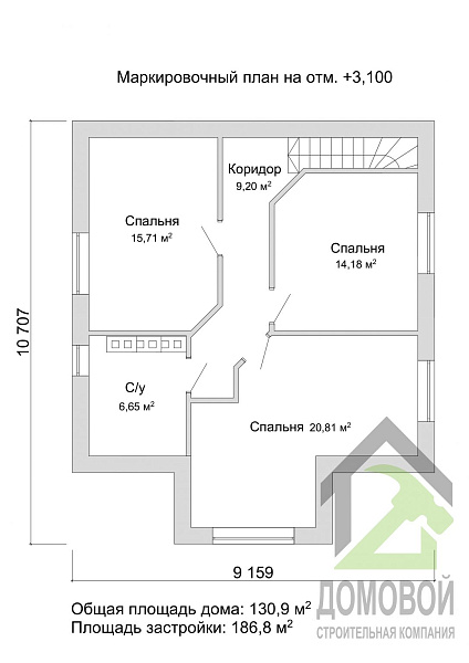 - Для 2-х этажных домов монолитная железобетонная лестница и межэтажное перекрытие