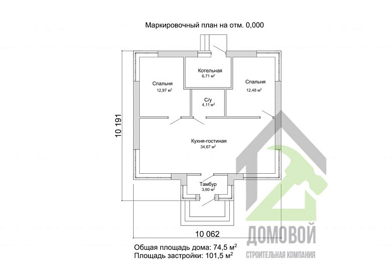 - Строительная площадь: 101.5 м²