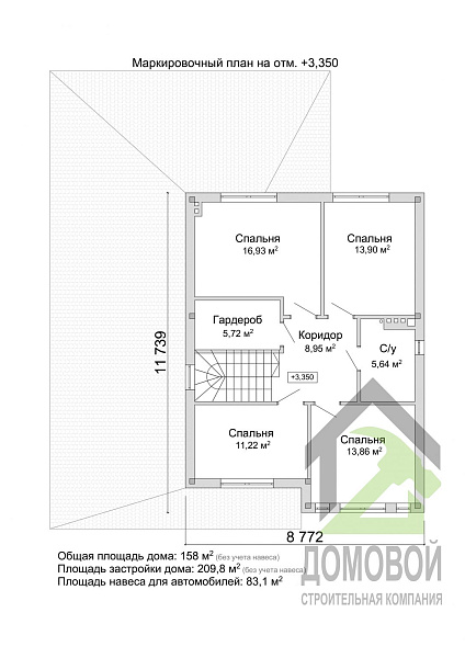- Для 2-х этажных домов монолитная железобетонная лестница и межэтажное перекрытие