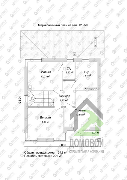 - Строительная площадь: 204 м²
