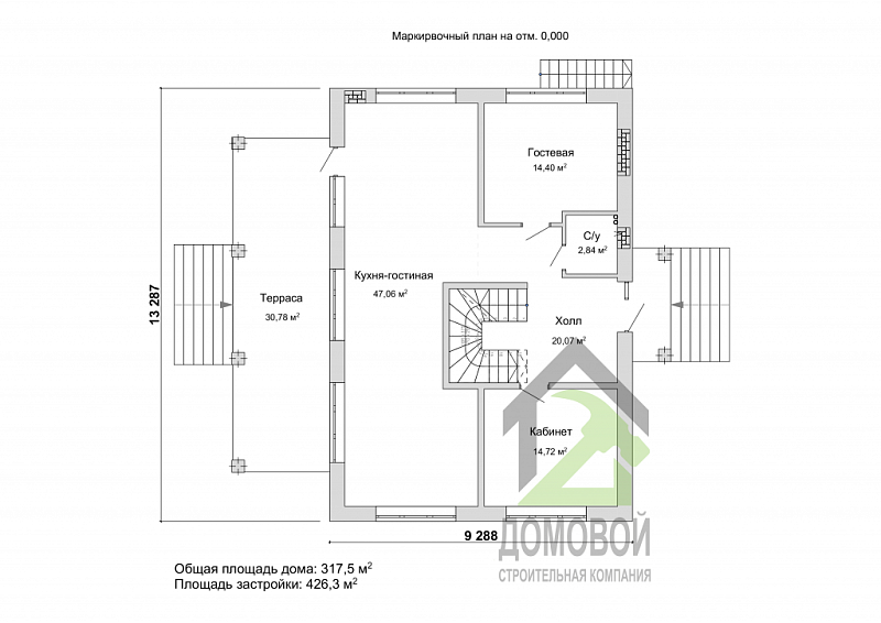- Для 2-х этажных домов монолитная железобетонная лестница и межэтажное перекрытие