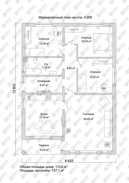 - Строительная площадь: 137.1 м²