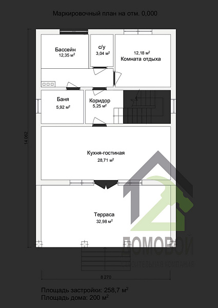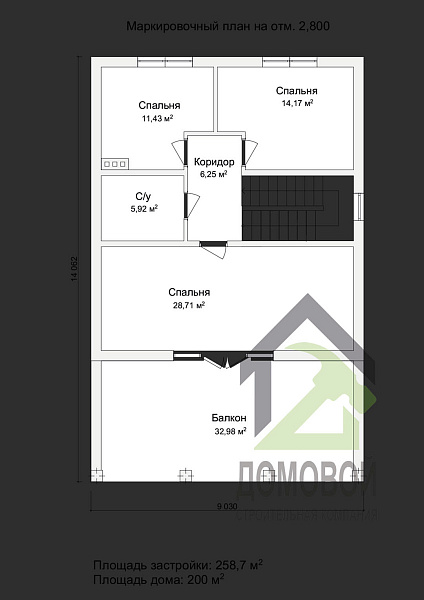 - Строительная площадь: 258.7 м²