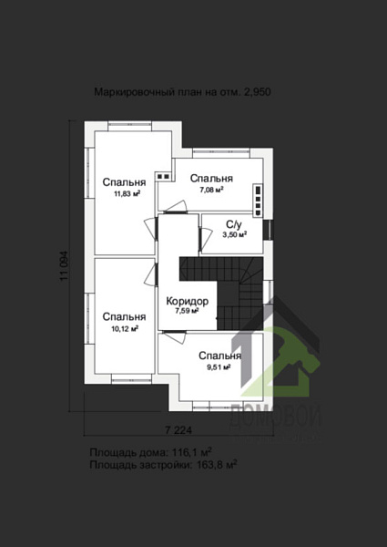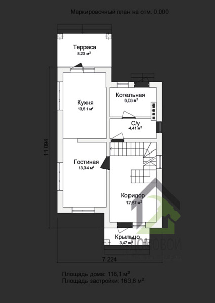 - Строительная площадь: 163.8 м²