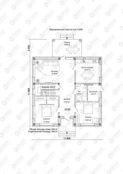 Проект D — 247 каменного дома Материалы фундамент - ленточный , свайно-ростверковый , на монолитном уширении , стеновой материал -керамзитовый блок , газоблок , забутовочный кирпич , паромакс , облицовка стен - керамический кирпич , декоративная штукатурка , кровля - металлочерепица , мягкая кровля , натуральная черепица