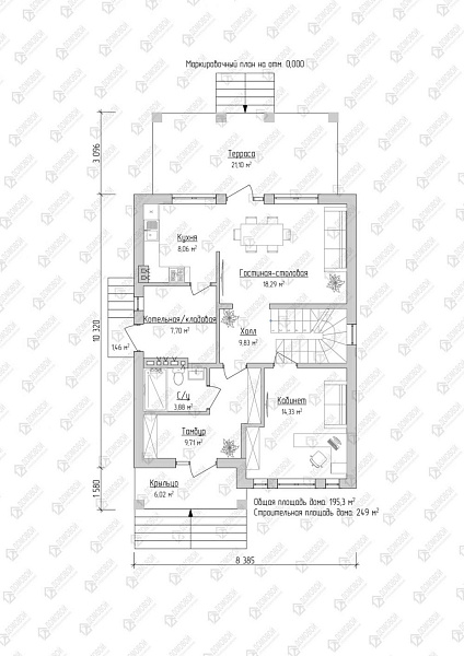 Проект D-260 каменного дома Материалы фундамент - ленточный , свайно-ростверковый , на монолитном уширении , возведение стен -керамзитовый блок , газоблок , забутовочный кирпич , паромакс , облицовка стен - керамический кирпич , декоративная штукатурка , кровля - металлочерепица , мягкая кровля , натуральная черепица