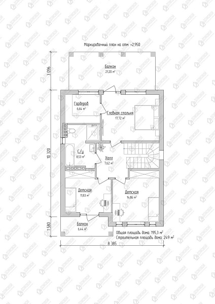 - Для 2-х этажных домов монолитная железобетонная лестница и межэтажное перекрытие