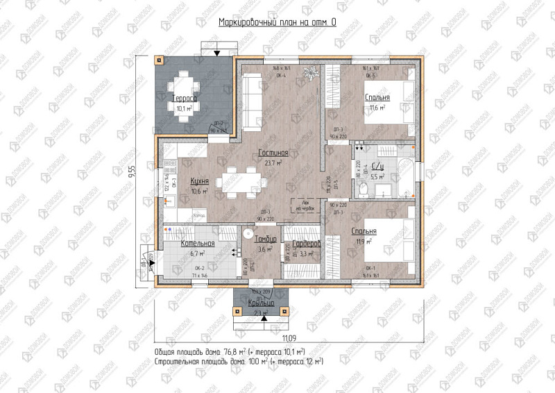- Строительная площадь: 100 м²